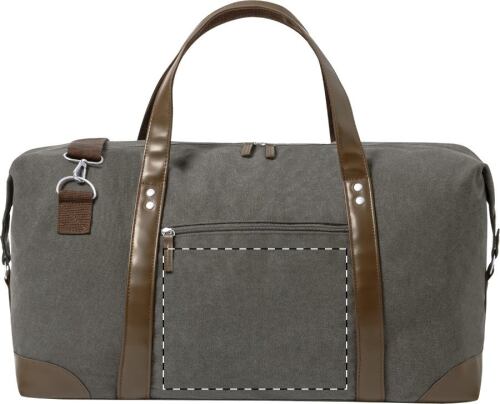 Borsa sportiva in canvas con scomparto principale chiuso da cerniera e tasca frontale, tracolla regolabile, dettagli e manici in PU.