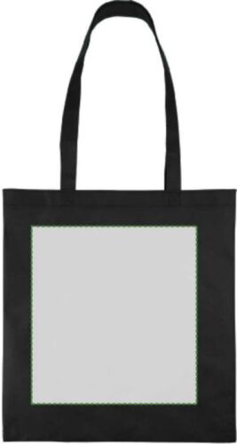 Shopper in PP non tessuto 80 g/m², con maniglie termosaldate e cucite a croce, dispone di un unico grande scomparto. Capacità 11 litri, capacità di trasporto 7 kg.