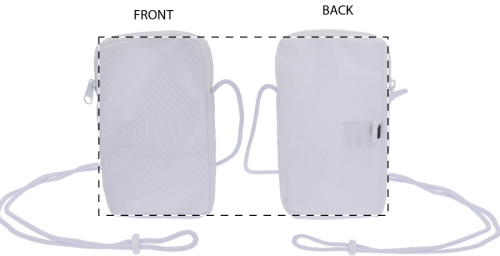 Borsello a tracolla in poliestere 600D RPETpersonalizzabile con stampa in sublimazione su tutta la superficie, cordoncino regolabile, scomparto chiuso da cerniera, tasca frontale ed etichetta RPET. Ideale per contenere un telefono cellulare o altri piccoli oggetti di valore. MOQ: 25pz.