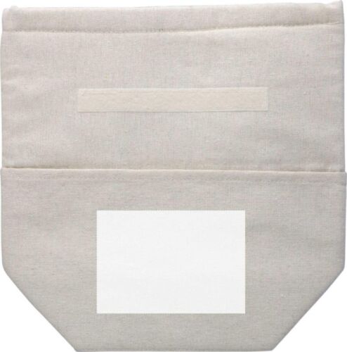 Borsa termica rolltop in cotone riciclato 220 g/m2, rivestimento interno in EPE da 3 mm e PEVA 12C, presenta chiusura in velcro, piccola tasca frontale, manico per il trasporto, include etichetta esterna cotone riciclato