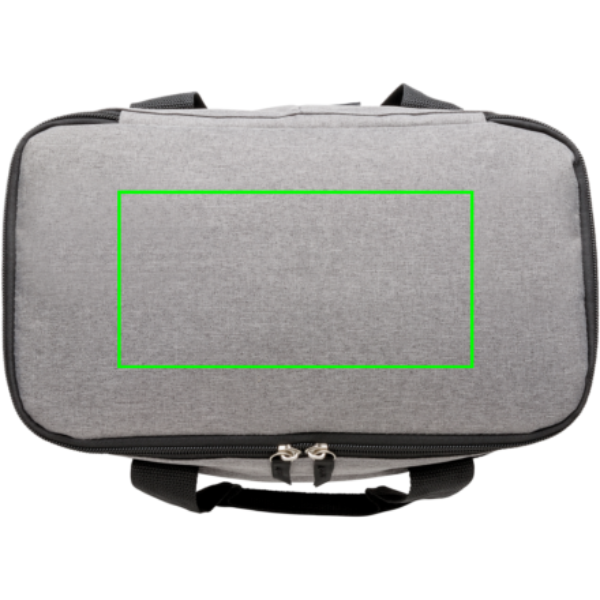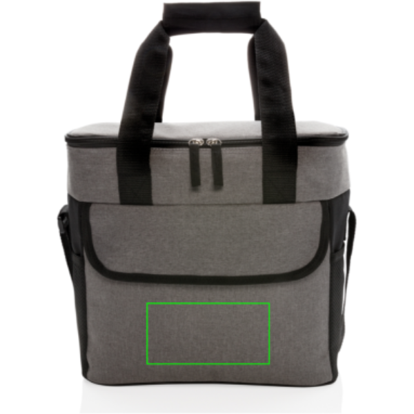 Borsa termica grande in poliestere 600D two-tone. Capacità 20 lattine. Due tasche laterali in rete e una tasca frontale.
