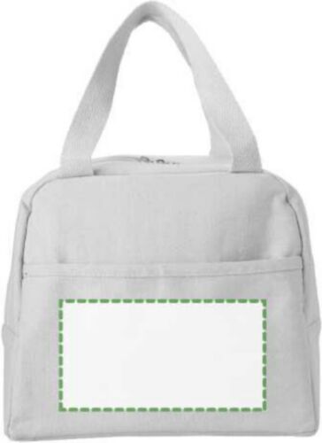 Borsa termica in cotone 280 gr/m², fodera in PEVA, ampio scomparto con chiusura lampo, piccola tasca frontale