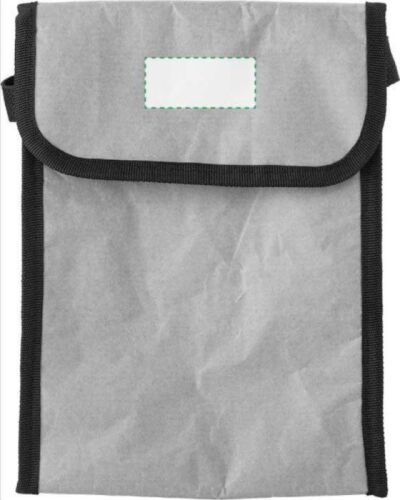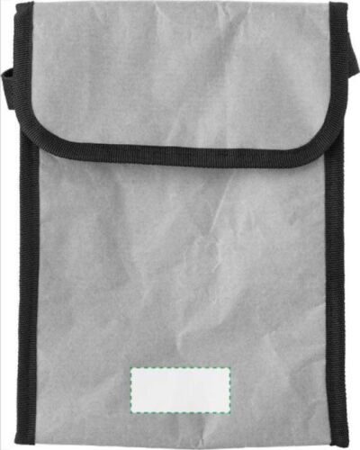 Borsa termica per pranzo, a forma di sacchetto in carta, con rivestimento in alluminio, finiture in nero, con tracolla