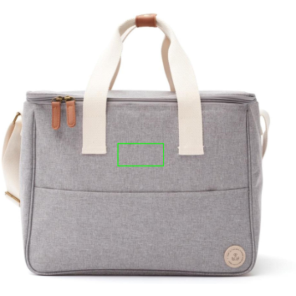 Questa spaziosa borsa frigo con coperchio mette fine alle vecchie e noiose versioni in plastica. E' in tessuto melange accompagnato da dettagli in PU che la rendono elegante come una normale borsa. Il rivestimento in PEVA mantiene il fresco per un lungo periodo di tempo e facilita la pulizia. Include tracolla e manici.