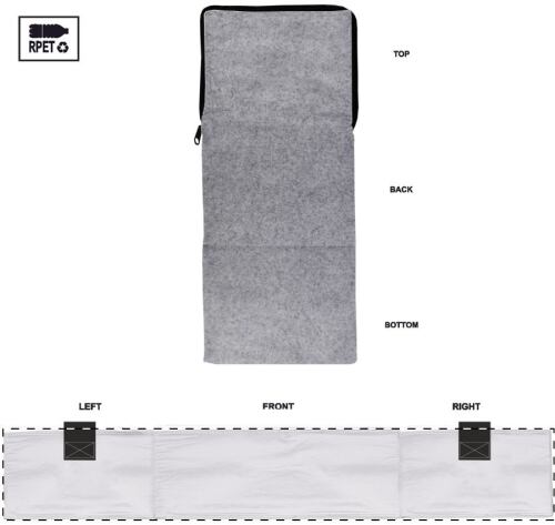 Borsa termica in feltro RPET per 6 lattine da 330ml con cerniera, personalizzabile sul lato anteriore con stampa a colori, imbottitura in alluminio ed etichetta RPET. Il costo comprende la stampa in sublimazione. MOQ: 25 pezzi.