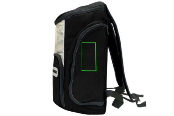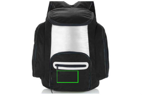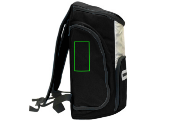 Zaino frigo in 600D con interno color argento per mantenere bevande e cibo sempre freschi. La tasca forntale con cerniera può contenere altri oggetti.
