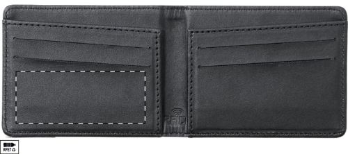 Portafoglio in poliestere RPET con protezione RFID e 6 scomparti per carte di credito.