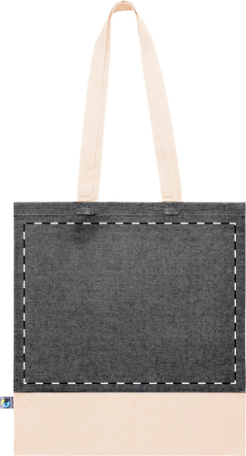 Borsa per la spesa riutilizzabile in 100% cotone equosolidale bicolore con manici lunghi, 140 g/m². Con etichetta Fairtrade.