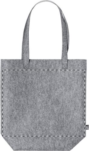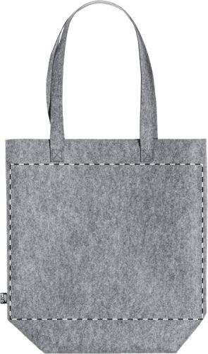 Borsa per la spesa in feltro RPET con manici extra lunghi, soffietto sul fondo ed etichetta RPET.