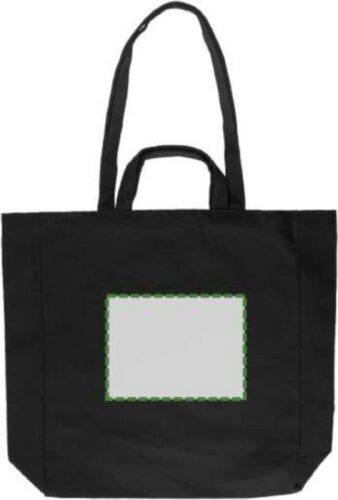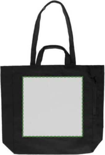 Borsa shopping in poliestere e cotone riciclato 350 g/m², con manici corti e lunghi, tasca con chiusura lampo sul lato