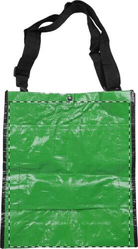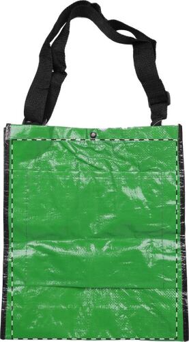Borsa riciclata biodegradabile di plastica con bottone di fissaggio e spallina aggiustabile. Puó essere fissato a borse trolley. Materiale: tessuto pp.
