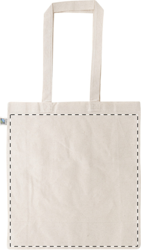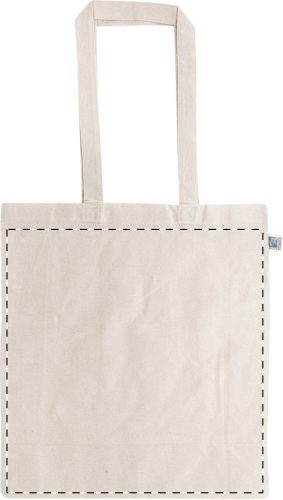 Borsa per la spesa riutilizzabile in 100% cotone equosolidale da 180 g/m² con manici lunghi ed etichetta Fairtrade.