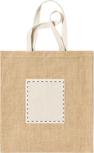 Borsa per la spesa in iuta con tasca e manici lunghi in cotone.