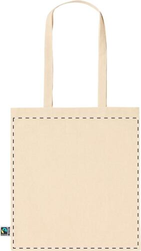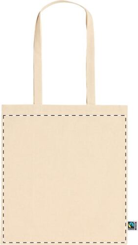 Borsa per la spesa riutilizzabile in 100% cotone equosolidale con manici lunghi, 180 g/m². Con etichetta identificativa Fairtrade.