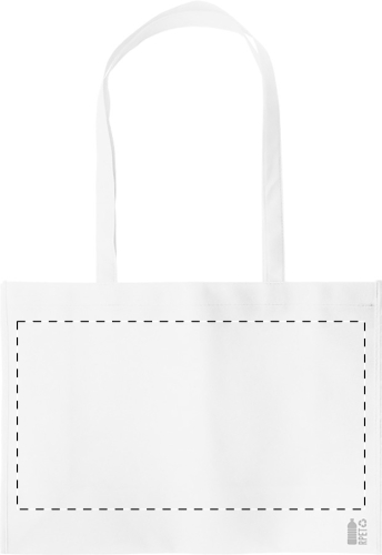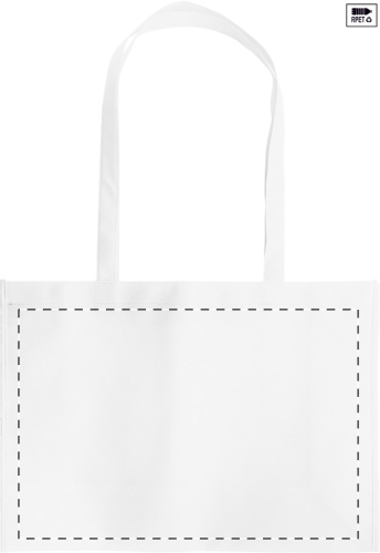 Borsa per la spesa in tessuto non tessuto RPET 80 g/m², con soffietto manici lunghi ed etichetta RPET.