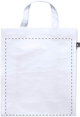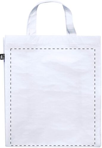 Borsa per la spesa in poliestere RPET laminato da 110 g/m², con soffietto, manici corti ed etichetta RPET.