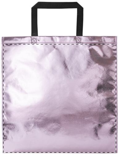 Borsa per la spesa in tessuto non tessuto laminato di colore metallico, con manici di media lunghezza.