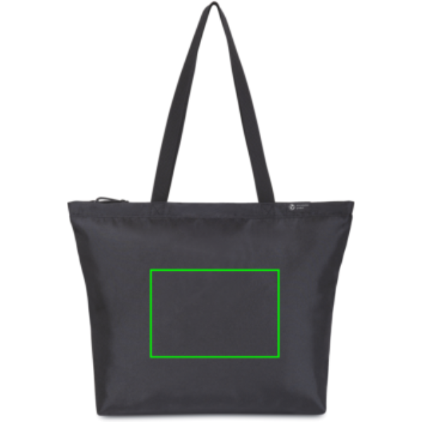 Una versione moderna e sostenibile di una borsa shopper classica, realizzata con tessuto e cinghie ricavati da bottiglie di plastica riciclate. Ampio scomparto principale con chiusura a zip. Tasca interna per riporre la borraccia. Disponibile su entrambe le sponde dell'Atlantico. Questo articolo è disponibile anche presso Gemline per i clienti negli Stati Uniti e in Canada.