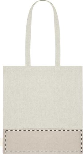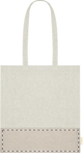 Borsa per la spesa bicolore in 100% cotone riciclato 120 g/m². con manici lunghi ed etichetta cotone riciclato.