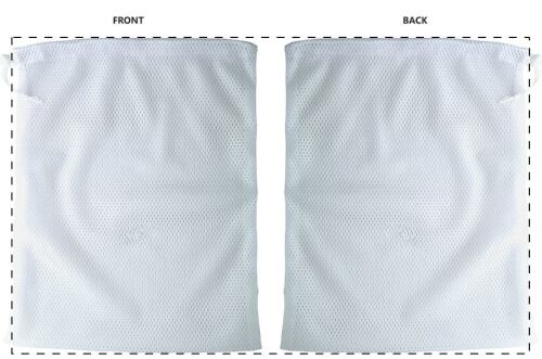 Sacchetto a rete in poliestere con chiusura a coulisse. Grafica stampata in sublimazione su tutta la superficie. MOQ: 50 pz.
