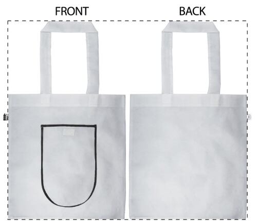 Borsa per la spesa pieghevole in tessuto non tessuto RPET con chiusura in velcro. Personalizzazione in sublimazione su tutta la superficie ed etichetta RPET. MOQ: 25 pezzi.