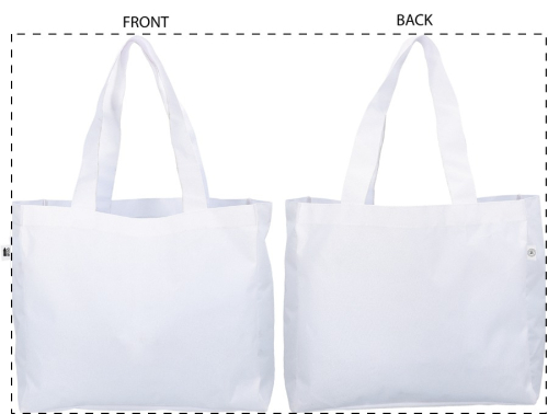 Borsa per la spesa in poliestere 600D RPET con soffietto e manici lunghi, personalizzabile con grafica stampata in sublimazione su tutta la superficie ed etichetta RPET. MOQ: 25 pezzi.