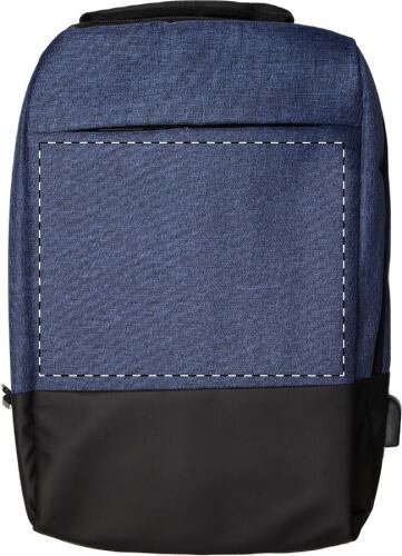 Zaino bicolore con scomparti multipli e zip, tasche interne per organizer, scomparto imbottito per laptop (17"), schienale e spallacci ergonomici. Con tasca antitaccheggio, cinghia per trolley e connettore USB integrato per power bank. Poliestere 400D.