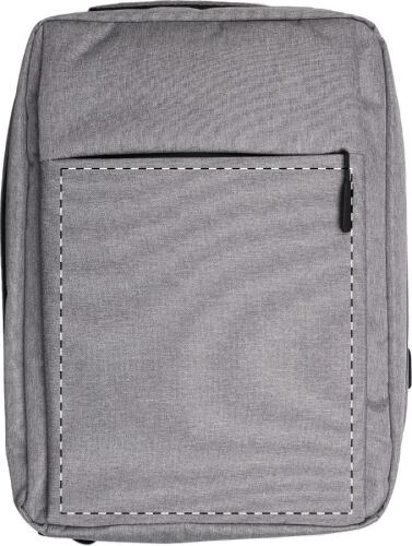 Zaino con scomparti multipli e zip, tasche interne per organizer, scomparti imbottiti per laptop (15") e tablet, schienale e spallacci ergonomici. Con cinghia per trolley e connessione USB integrata per power bank. Poliestere 400D.