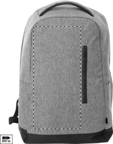 Zaino RPET con scomparti chiusi da cerniera, scomparto imbottito per laptop (15") e tablet (12"), fascia trolley, schiena e spallacci ergonomici. Con tasca anti-taccheggio nascosta. 600D RPET poliestere.