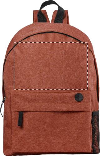 Zaino con schienale e spallacci imbottiti, tasca frontale con zip, uscita per auricolari e tasca laterale in rete, poliestere 600D.