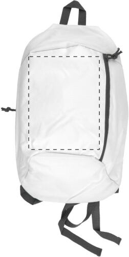 Zaino in poliestere 600D con schienale imbottito, spallacci regolabili e tasca frontale con zip.
