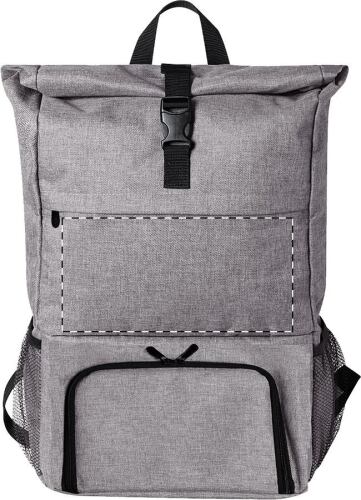 Zaino con scomparto contenitore portavivande imbottito in PEVA, scomparto principale con fibbia, tasche laterali in rete e spallacci imbottiti. Tessuto: poliestere 600D.