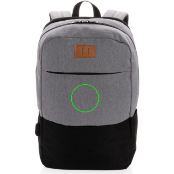 Porta con te tutto ciò che ti serve per lavoro o per svago. Realizzato in tessuto resistente con un design sportivo e urbano. Include una tasca imbottita porta PC da 15,6" e una tasca frontale con cerniera. La porta USB integrata ti permette di ricaricare il tuo smartphone durante i tuoi spostamenti. Senza PVC.