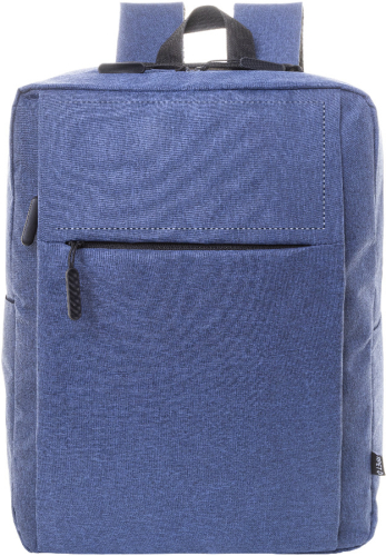 Zaino in poliestere 600D RPET con scomparto principale e 2 tasche chiusi da cerniera, tasca laterale, scomparto imbottito per laptop (15"), cinghia trolley, schienale e spallacci imbottiti ed etichetta RPET.