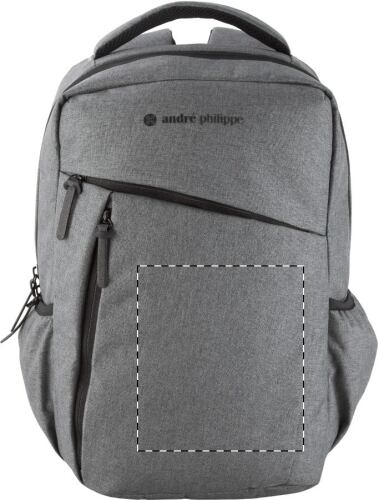 Zaino con tasche multiple e zip, scomparto imbottito per computer portatile (15"), schienale e spallacci imbottiti. Realizzato in poliestere 600D a doppio strato. Prodotto a marchio André Philippe.