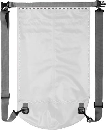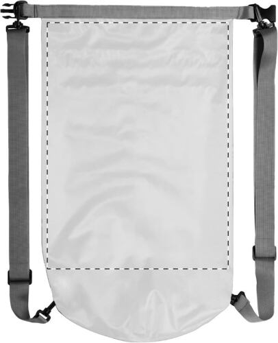 Sacca zaino impermeabile, in tessuto ripstop, spallacci regolabili e fibbia in plastica.