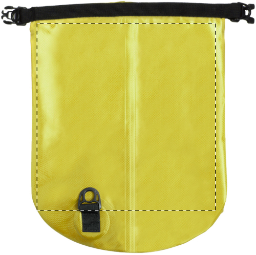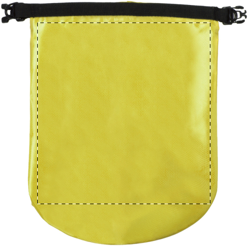 Sacco impermeabile in tessuto ripstop con tracolla regolabile, fibbia e moschettone in plastica.