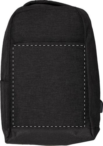 Zaino antitaccheggio con tasche multiple, scomparto imbottito per laptop (15") e tablet (12"), schienale imbottito e tracolla. Con cinghia trolley e connessione USB integrata per power bank. 600D Poliestere.