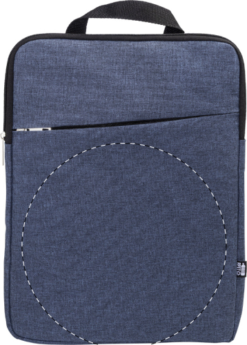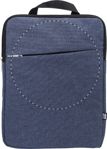 Borsa a tracolla imbottita per documenti o computer portatile in poliestere 600D RPET con scomparto e tasca anteriore chiusa da cerniera, tracolla regolabile in posizione verticale e orizzontale ed etichetta RPET. Borsa compatibile con computer portatili fino a 15". Con etichetta distintiva RPET.