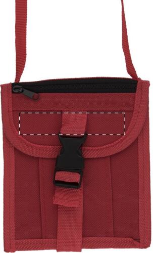 Custodia multifunzione con tracolla, 2 tasche interne, 1 tasca con chiusura zip frontale. Poliestere 600D.