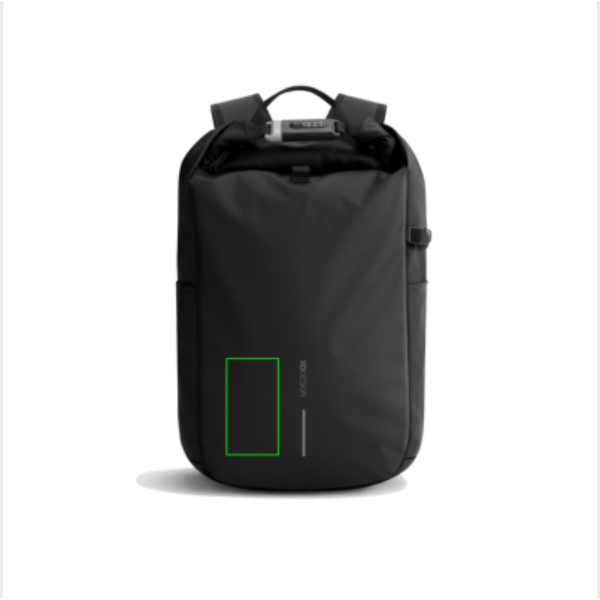 Il nuovo zaino antitaccheggio Urban è il compagno di viaggio ideale, che garantisce sicurezza e praticità. Arrotolando lo scomparto principale e fissandolo con il lucchetto a combinazione rinforzato, lo zaino offre una chiusura totale, che può essere utilizzata anche per bloccarlo attorno ad un oggetto fisso. Tasche nascoste sul retro. Lo zaino è dotato di una tasca laterale portabottiglia. All'interno, gli scomparti imbottiti sono adatti a un computer portatile da 16 pollici e le tasche in rete consentono di organizzare gli oggetti essenziali. Realizzato con poliestere riciclato tracciabile Aware™ e rifinito con un rivestimento in PU resistente all'acqua e morbido al tatto. Contenuto riciclato al 100%. Design registrato®