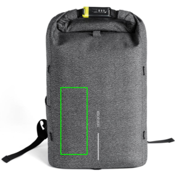 Lo zaino antitaccheggio Urban è il vostro compagno di viaggio per eccellenza. Realizzato in tessuto antitaglio di alta qualità, lo scomparto principale offre una sicurezza completa grazie a un lucchetto a combinazione rinforzato in acciaio, che può essere utilizzato anche per bloccare lo zaino attorno a un oggetto fisso. Le tasche nascoste sul retro e sulla tracolla offrono una protezione RFID per le carte di credito. E' dotato di una tasca laterale portabottiglie e di una rete elastica staccabile per l'attrezzatura sportiva. All'interno, gli scomparti imbottiti sono adatti ad un computer portatile da 15,6" e ad un tablet fino a 12,9", mentre i taschini in rete consentono di organizzare al meglio gli oggetti essenziali. Design registrato®.