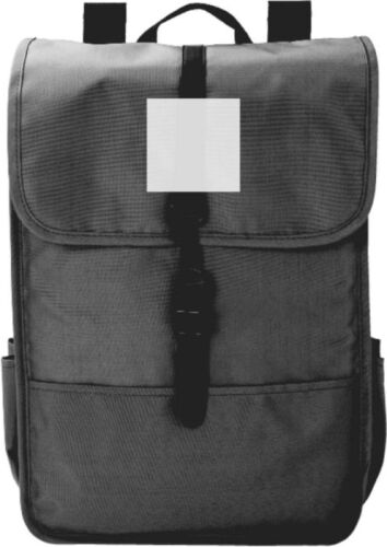 Zaino con patta in poliestere 300 D rPET, ampio scomparto, include due vani laterali per borracce, chiusura con fibbia, cinturino in PU nero