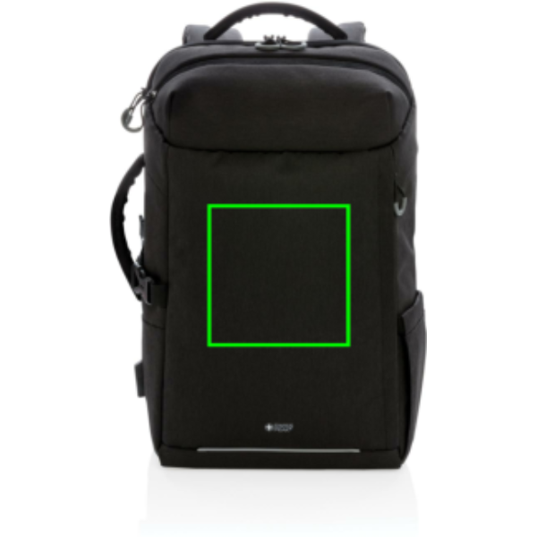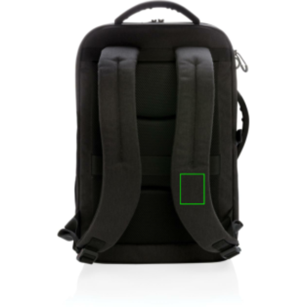 Questo zaino è pensato per viaggi di un giorno o per il fine settimana. È progettato con uno scomparto imbottito porta PC da 17". Questo modello ha la capacità di un trolley senza il peso delle ruote e della maniglia, inoltre l'uso di uno zaino ti rende più libero di muoverti semplificando la tua esperienza di viaggio. Include cinghia per trolley, tasca laterale per bottiglia d'acqua e uscita USB A. Tasca superiore ad accesso rapido, tasca frontale con cerniera e tasche protette da RFID. Con tracciante AWARE™ che convalida l'uso genuino di materiali riciclati. Ogni borsa ha riutilizzato 35,5 bottiglie in PET da 0,5 L. Il 2% del ricavato di ogni prodotto Impact venduto sarà donato a Water.org senza PVC.