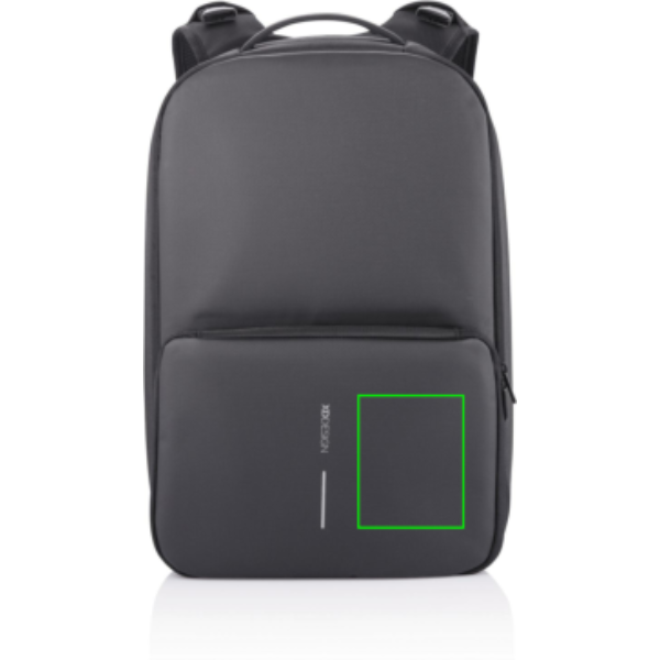 Questo zaino può essere convertito rapidamente dallo stile business a quello gym espandendo la tasca anteriore da 16 a 24 litri. Il design antifurto senza accesso frontale e le cerniere nascoste nello scomparto principale vi garantiranno un trasporto sicuro dei vostri dispositivi professionali. La tasca posteriore con protezione RFID consente di riporre in modo sicuro il portafoglio, il cellulare o le carte di credito. Inoltre, questo zaino vi mantiene sempre operativi grazie alla porta di ricarica rapida USB sulla tracolla, dove si trova anche un supporto per gli occhiali da sole. La borsa Flex Gym è lo zaino perfetto per andare al lavoro, all'università o in palestra. Realizzato in rPET con il sistema di tracciamento AWARE™. Con AWARE™, è garantito l'uso di autentico tessuto riciclato. Design registrato®