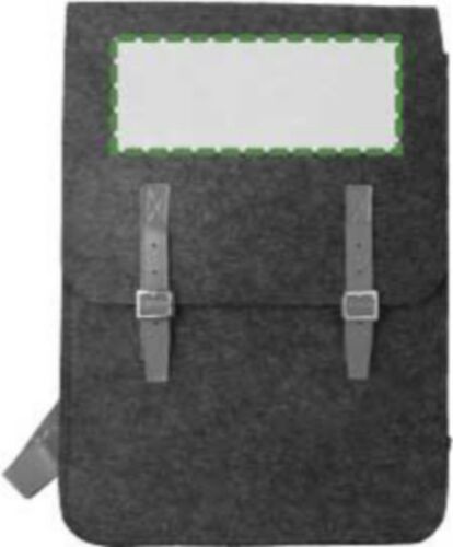 Zaino in feltro rPET, dettagli in PU, ampio scomparto interno, piccola tasca frontale, chiusura con due fibbie