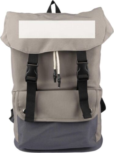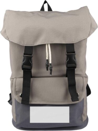 Zaino in poliestere 600 D (imitazione cotone), fodera in PU 210 D, supporto in schiuma PE 3 mm, ampio scomparto con coulisse, chiusura con fibbia, vano per laptop da 15 pollici, tasca sul lato anteriore con chiusura a bottoni in metallo, spallacci regolabili