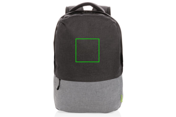 Stai pronto a partire col tuo zaino porta PC. Realizzato in rPET a due colori con design minimalista. Può contenere un PC da 15,6". Include taschini interni con protezione RFID. Senza PVC. Esterno 100% 600D rPET melange; fodera 100% poliestere.