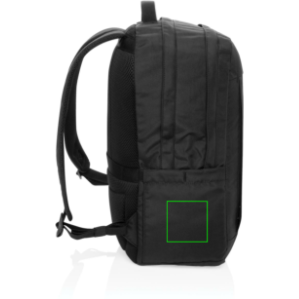 Lo zaino porta PC da 15,6" Edin Swiss Peak in 100% rPET Aware™ unisce funzionalità e sostenibilità per le vostre esigenze aziendali. Realizzato in 100% rPET con una fodera in rPET abbinata, questo zaino è dotato di uno scomparto porta PC da 15,6" e 16". Include inoltre una tasca frontale con cerniera, uno scomparto centrale a rete con cerniera, due tasche per passaporti e una tasca aperta portapenne. Dotato di una tracolla per facilitare gli spostamenti e di un manico a nastro sulla parte superiore, questo zaino è stato progettato all'insegna della praticità. Tutti i componenti, dalle cinghie alle cerniere e alle fibbie, sono realizzati con materiali riciclati, il che lo rende una scelta completamente sostenibile per il professionista moderno. Il 2% del ricavato di ogni prodotto venduto con AWARE™ sarà devoluto a Water.org. Senza PVC.
