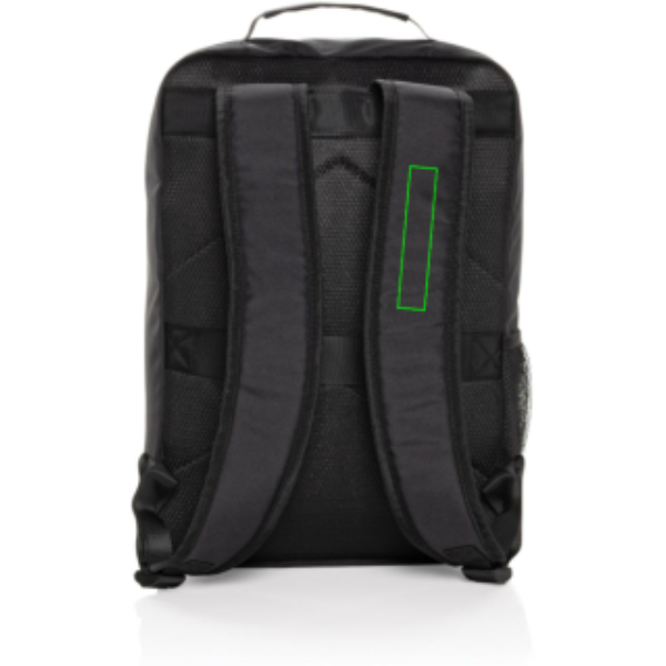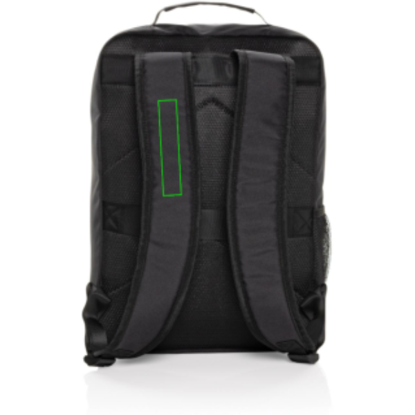 Lo zaino pota PC da 15,6" Essential Swiss Peak in rPET Aware™ è progettato per soddisfare le esigenze lavorative quotidiane. Realizzato al 100% in rPET, questo zaino elegante e resistente è dotato di uno scomparto principale con cerniera e di una sezione dedicata al computer portatile che si adatta ai moderni laptop da 15,6”, oltre a una tasca con cerniera in rete e all'etichetta per la manutenzione all'interno. Gli spallacci regolabili con fibbie assicurano una vestibilità confortevole, mentre la tasca frontale con cerniera e la tasca laterale portabevande offrono ulteriore spazio. La borsa è inoltre dotata di una comoda cinghia per bagagli sul retro e di una maniglia in tessuto sulla parte superiore per una facile gestione. Il logo Swiss Peak in tonalità e le cerniere Swiss Peak di alta qualità completano il suo look professionale. Il 2% del ricavato di ogni prodotto venduto con AWARE™ sarà devoluto a Water.org. Senza PVC.